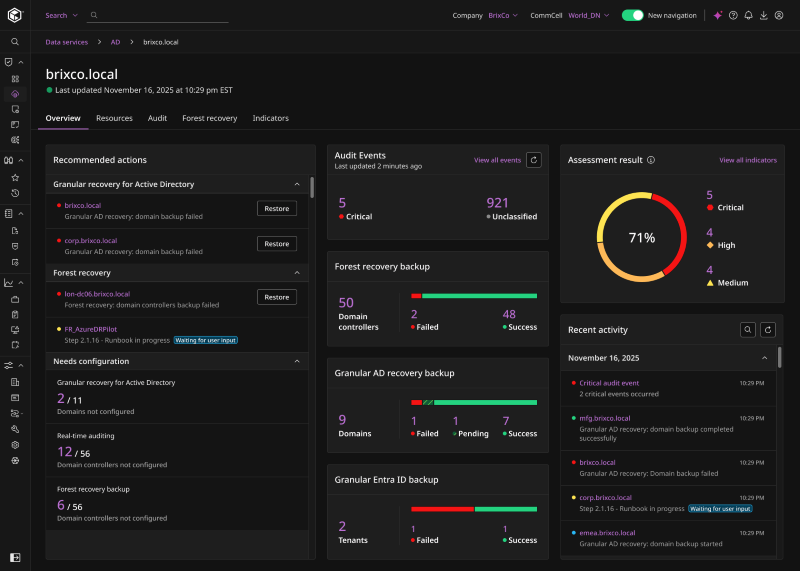 Schwer erkennbare Bedrohungen im Active Directory (AD) aufspüren, schädliche Änderungen automatisch protokollieren und den Verzeichnisdienst schnell auf einen vertrauenswürdigen, sauberen Zustand zurücksetzen – diese Aktionen sind laut Commvault über „Active Directory Forest Recovery“ machbar. IT-Teams können nun ihre Pläne zur Wiederherstellung des AD im Vorfeld testen, um besser für den Notfall gerüstet zu sein. Die Neuerungen im Bereich Identitätsresilienz sind ab Anfang 2026 im Rahmen des Early Access verfügbar.